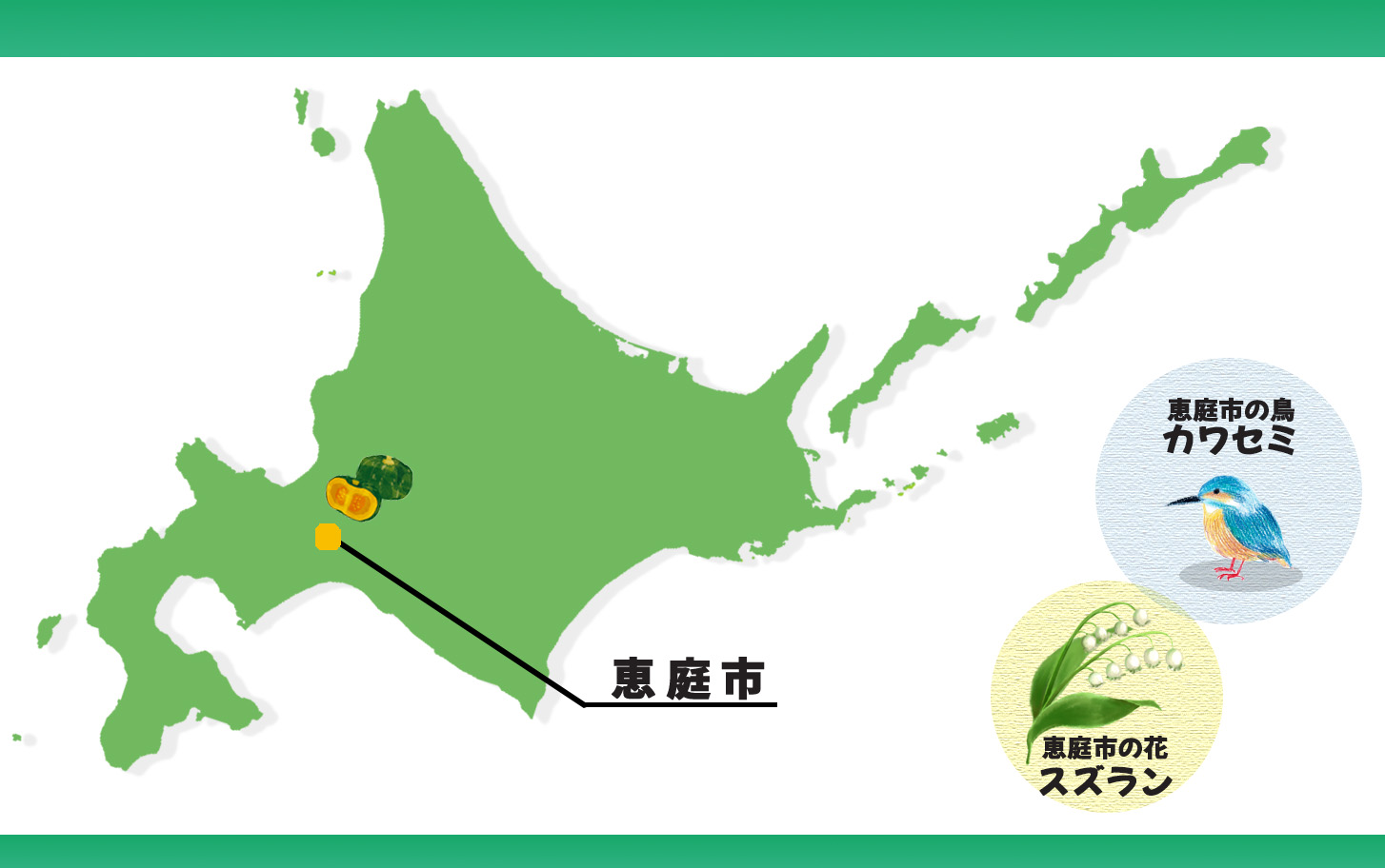 えびすかぼちゃは、昭和39年に恵庭市が道内で初めて栽培を開始し、市を代表する特産品となっています。鮮やかな黄色の果肉と、高い糖度、蒸したときのホクホク感が特徴で、スープ、天ぷら、コロッケなどに適しています。蒸してそのまま食べるのもおすすめです。